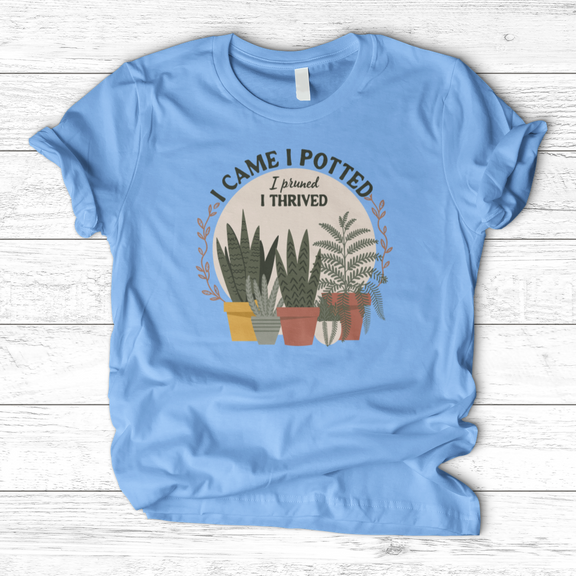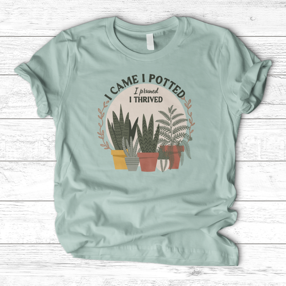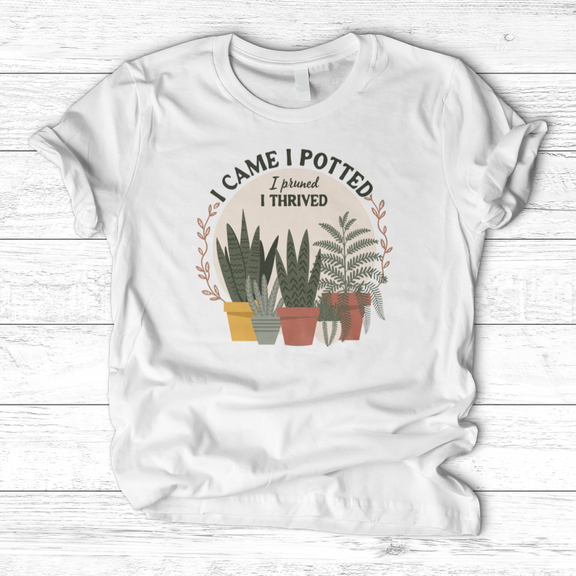 I Came I Potted T-Shirt For the discerning plant lover, this refined tee delivers wit with understated elegance. The clever wordplay appeals to those who appreciate horticultural humor and botanical passion. Crafted for comfort and style, it's the perfect statement piece for gardeners, plant collectors, and green-thumb enthusiasts who don't take themselves too seriously. Wear it proudly to plant swaps, garden centers, or casual outings where your love of plants speaks volumes.