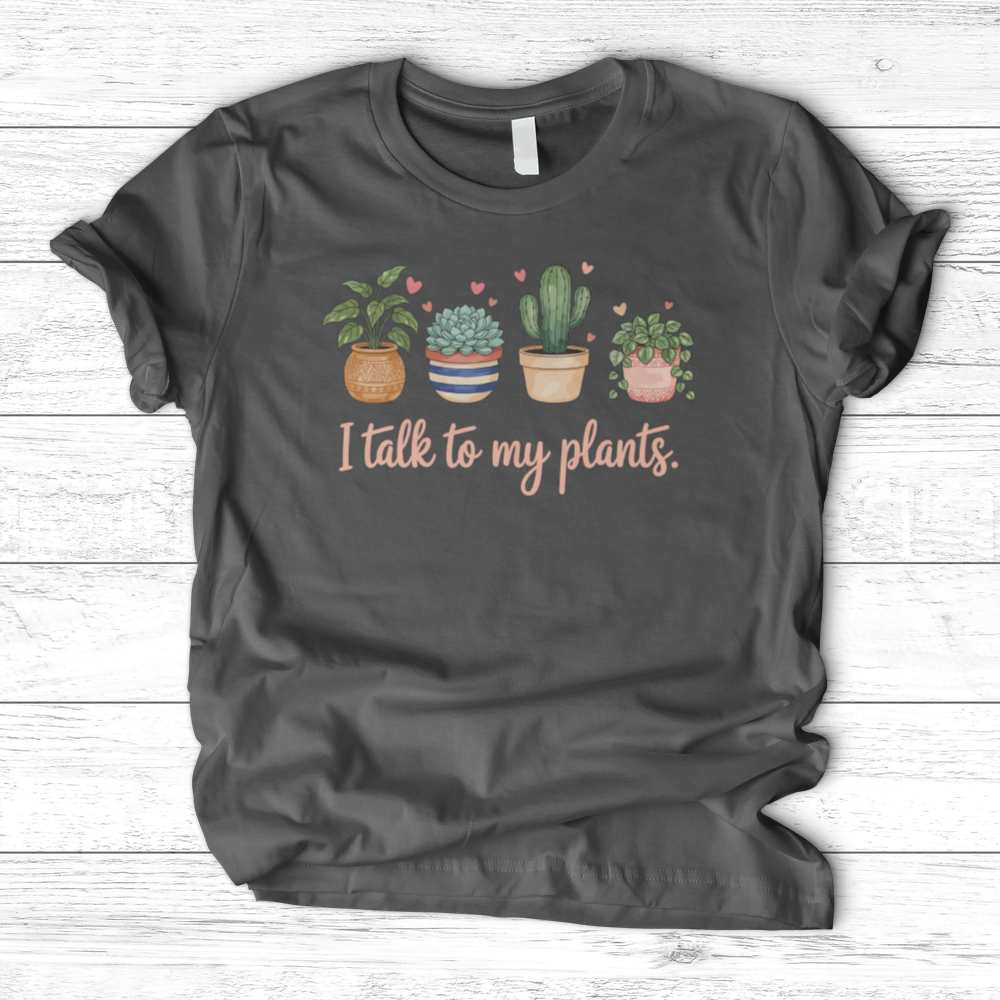 I Talk to My Plants T-Shirt For the botanist who believes in the power of conversation, this refined tee celebrates the quiet communion between plant parent and greenery. Crafted from premium cotton, it offers both comfort and durability for everyday wear. The understated design appeals to those who appreciate horticultural humor with a touch of elegance. Perfect for expressing your dedication to your leafy companions while maintaining an air of sophistication.