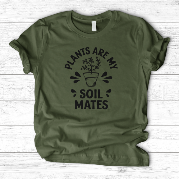 Celebrate your botanical passion with this thoughtfully designed tee that speaks to the plant lover's philosophy. The "Plants are My Soil Mates" graphic captures the essence of cultivating meaningful connections with nature, blending horticultural humor with understated elegance. Crafted for comfort and durability, this shirt pairs effortlessly with your everyday wardrobe while making a subtle statement about your green-thumb lifestyle. Perfect for garden enthusiasts, plant collectors, and anyone who finds solace in the company of foliage.