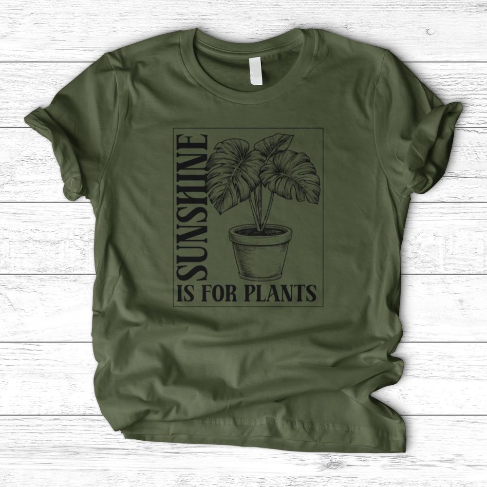 Celebrate your botanical passion with this refined tee that speaks to the plant lover's philosophy. Crafted from quality cotton, this shirt features a witty design that humorously prioritizes greenery over sun exposure—perfect for those who understand that thriving plants deserve the best light. Ideal for casual wear, gardening sessions, or connecting with fellow plant enthusiasts. A sophisticated statement piece for anyone who tends to their indoor jungle with dedication and care.
