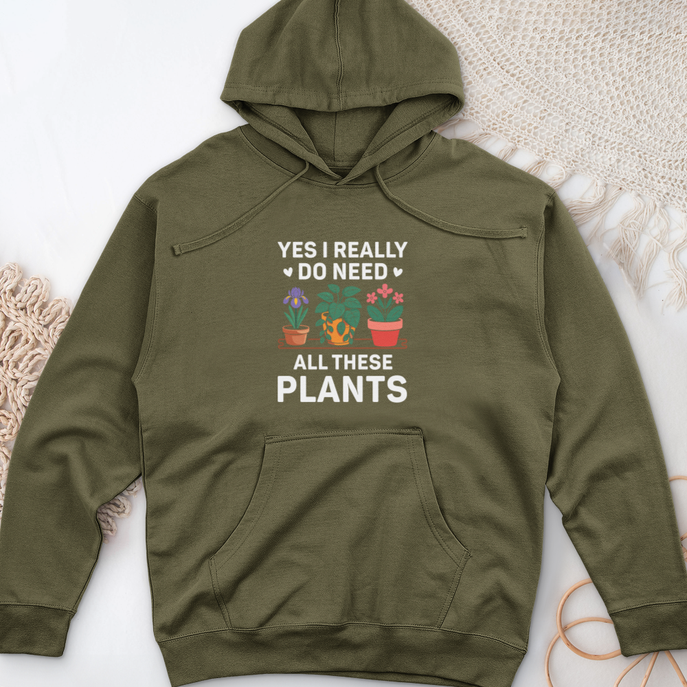 Yes I Really Do Need All These Plants Midweight Hooded Sweatshirt