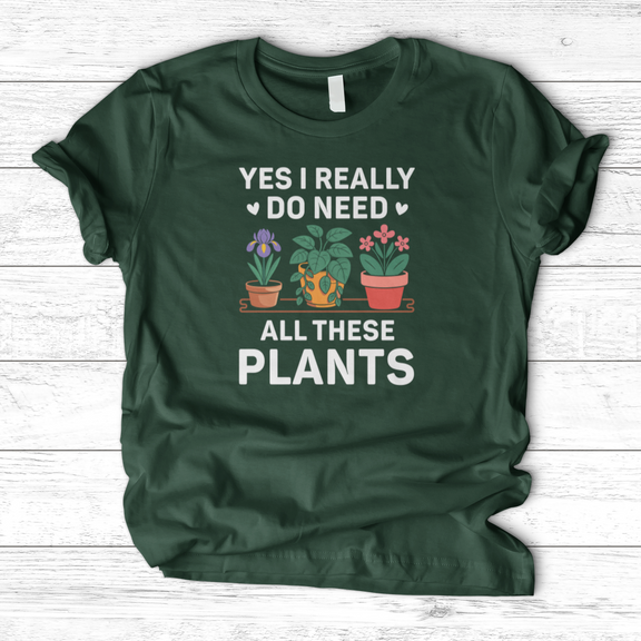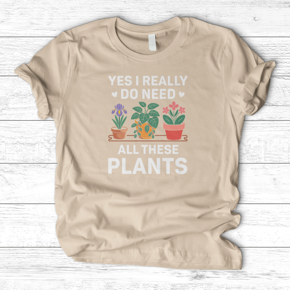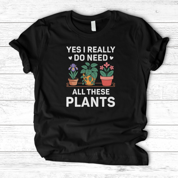 Celebrate your passion for greenery with the "Yes I Really Do Need All These Plants" T-shirt. Crafted for plant lovers who embrace their collection with pride, this shirt offers a comfortable fit and a refined graphic statement. Perfect for casual wear or garden outings, it elegantly combines style and personality, making it clear that your plant obsession is both genuine and stylish.